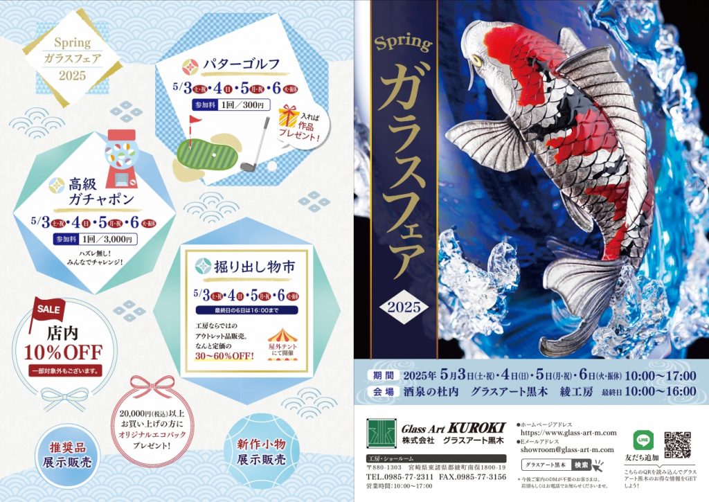 5月3日(土)~6日(火)の4日間グラスアート黒木では【Springガラスフェア2025】を開催いたします。