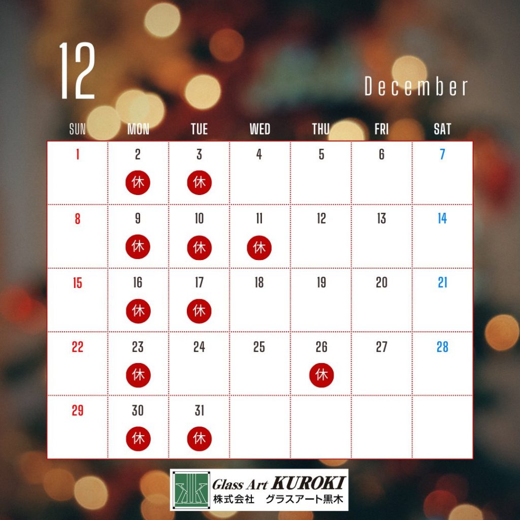 2024年12月のグラスアート黒木ガラス工房ショールームの店休日をご案内いたします。